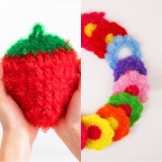 핸드메이드 딸기 & 플라워 수세미 2종 세트 - 245152312