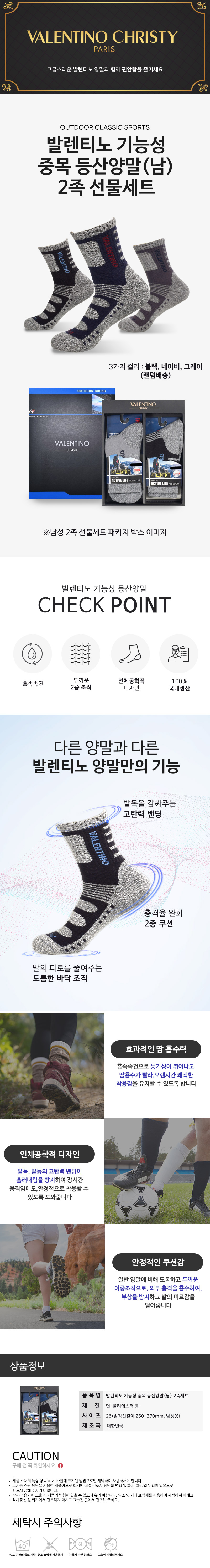 발렌티노 기능성 중목 등산양말(남) 2족세트