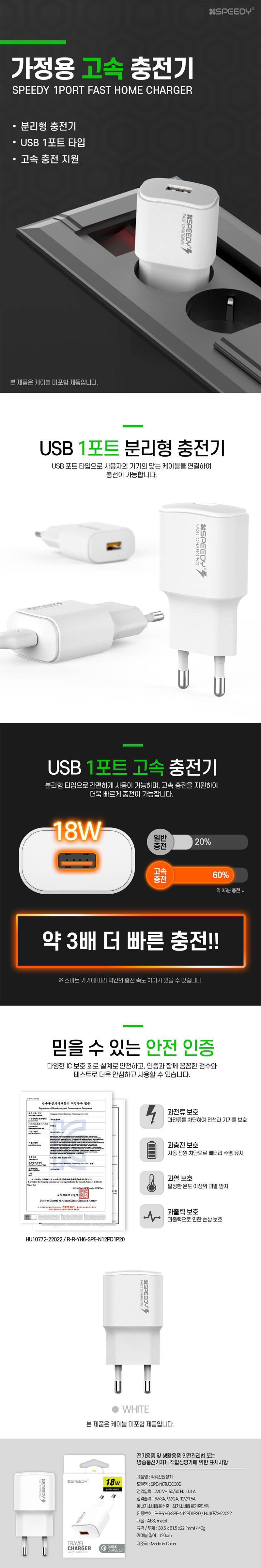 스피디 18W(QC3.0) 분리형 충전기(케이블X)(18)