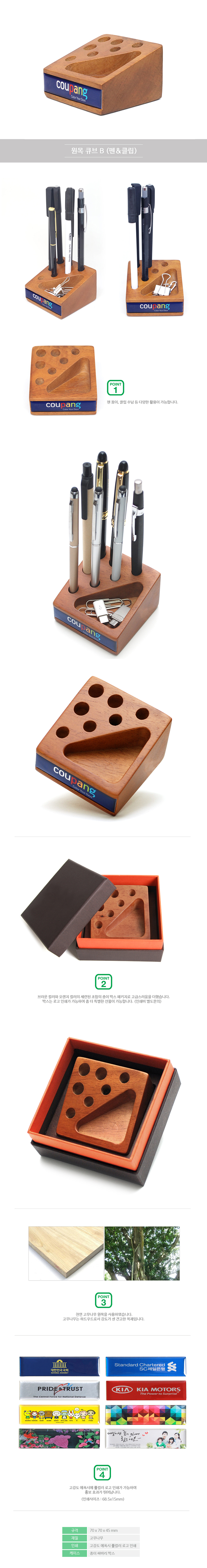 원목 큐브 펜홀더 (펜&클립)