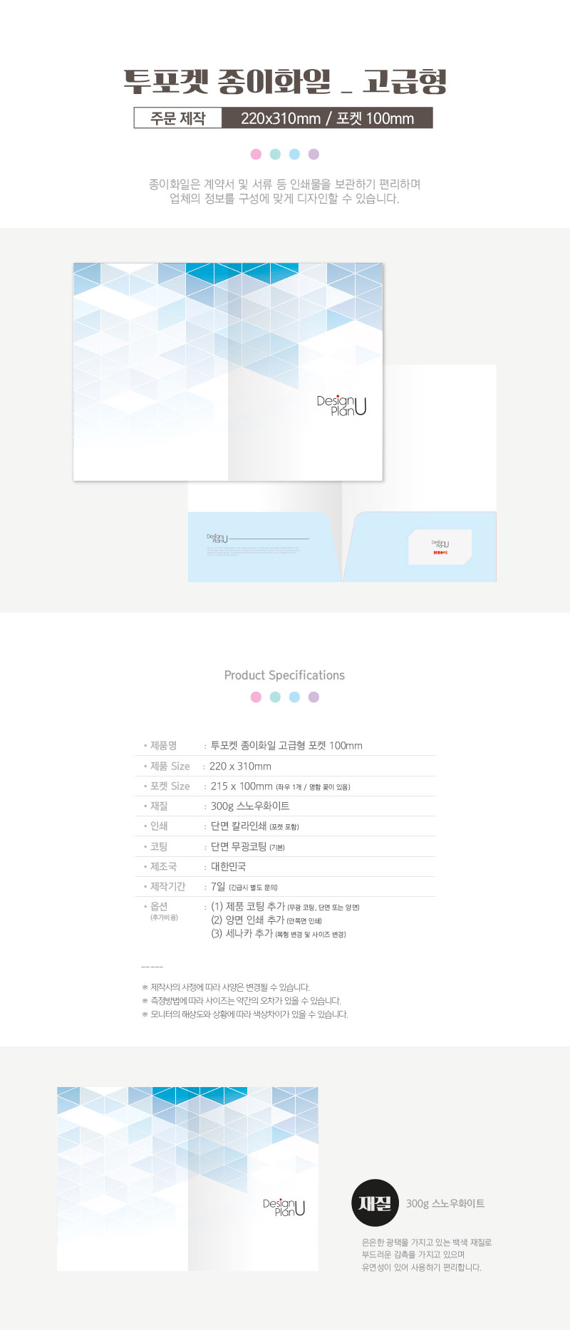 [주문제작] 투포켓 종이화일 (고급형/포켓 100mm)