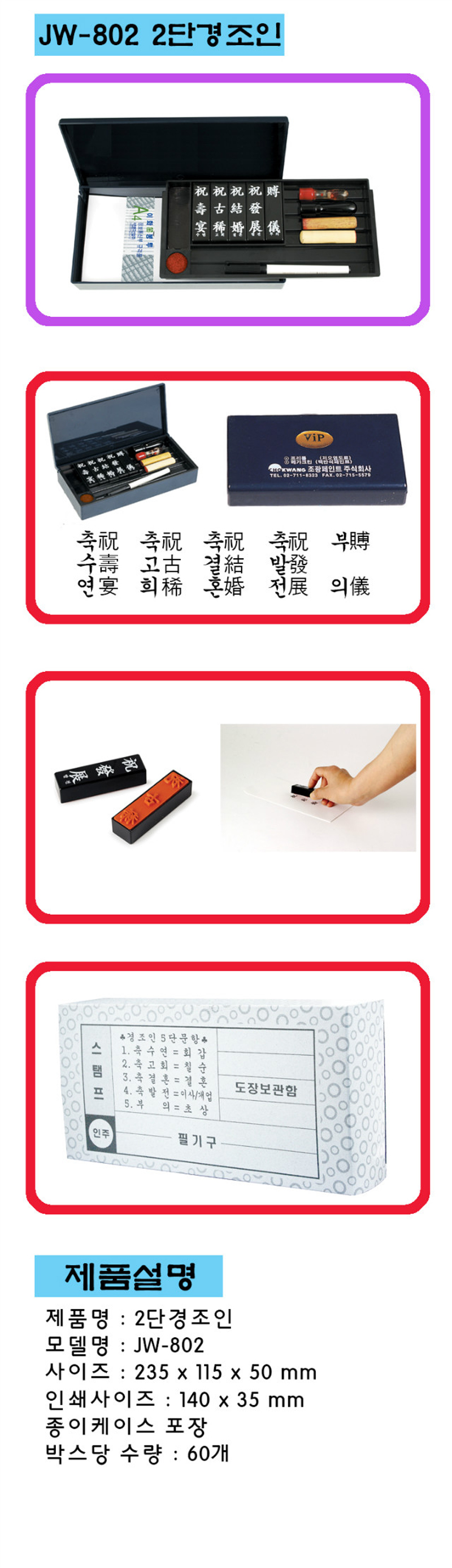 * 가정에서 주로 쓰는 5개의 경조인과 인주,스템프,봉투로 구성된 제품