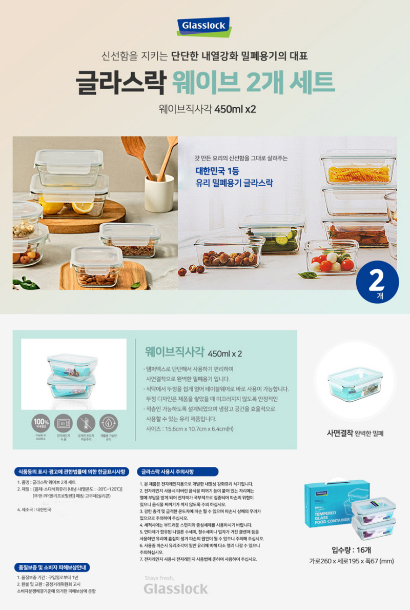 글라스락 웨이브 직사각 2조세트