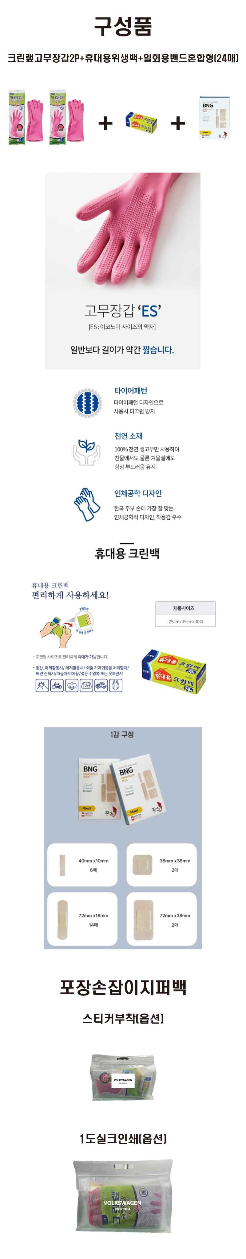 리니 크린랲 고무장갑 위생백 일회용밴드세트
