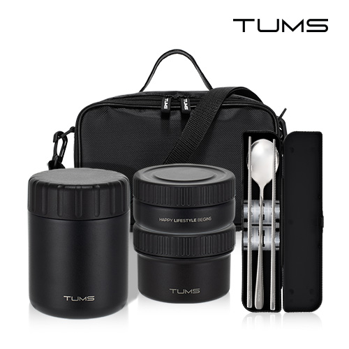 텀스 스텐+플라스틱 2in1 보온도시락 세트 5P (400+250+210ml+수저세트+가방)