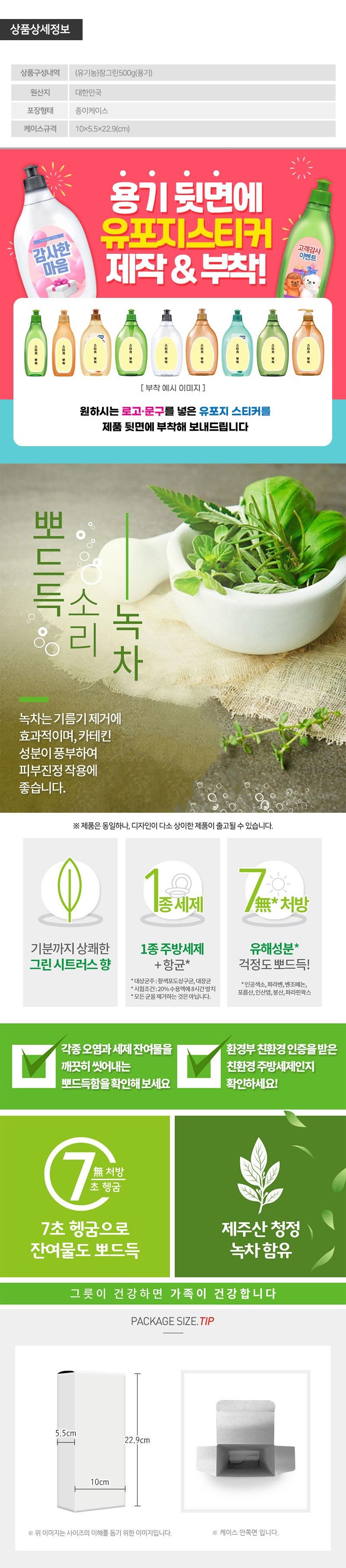참그린 녹차500용기 1P 유포지스티커부착무료