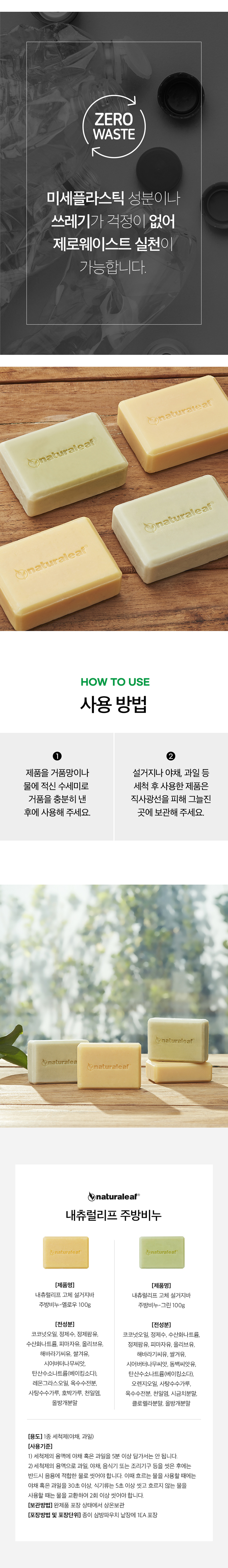 내츄럴리프 친환경 1종 주방비누 CP 워싱바 설거지비누