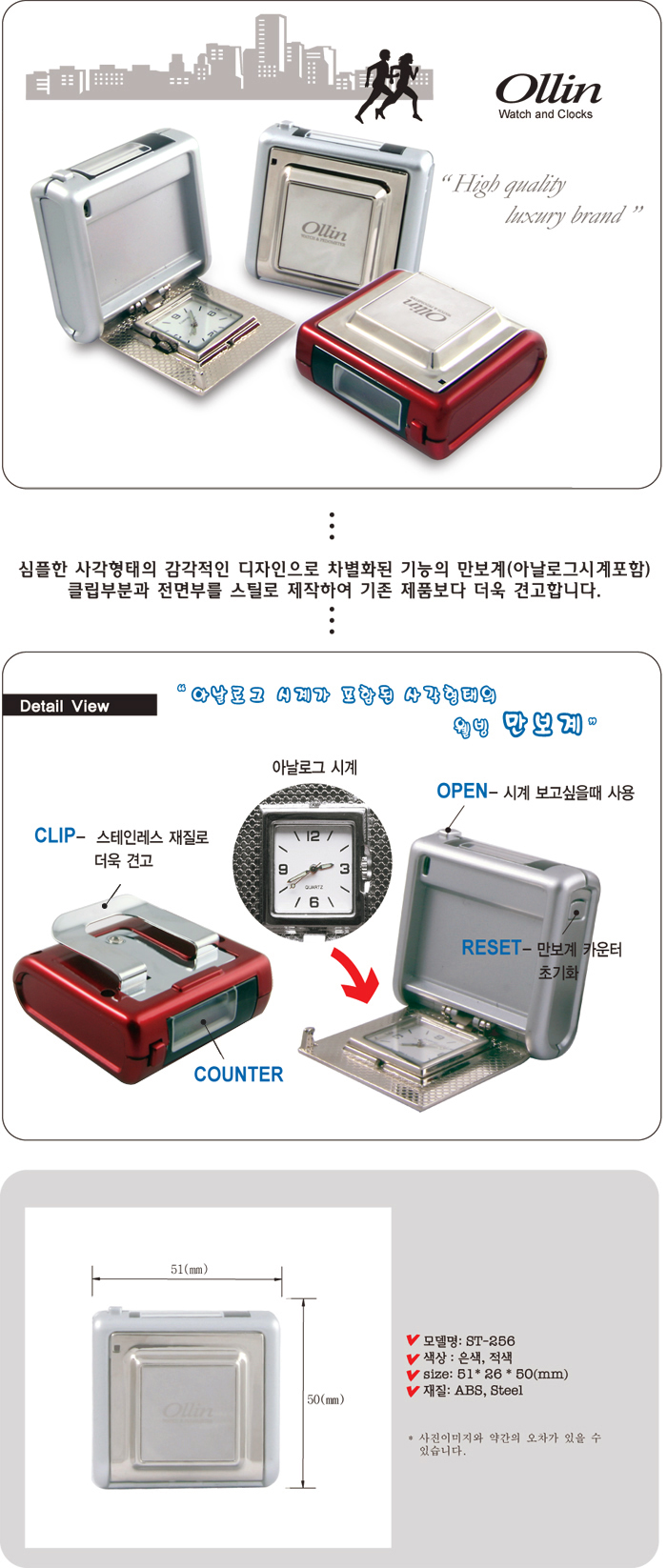 전면 스틸 제작 견고한 만보계