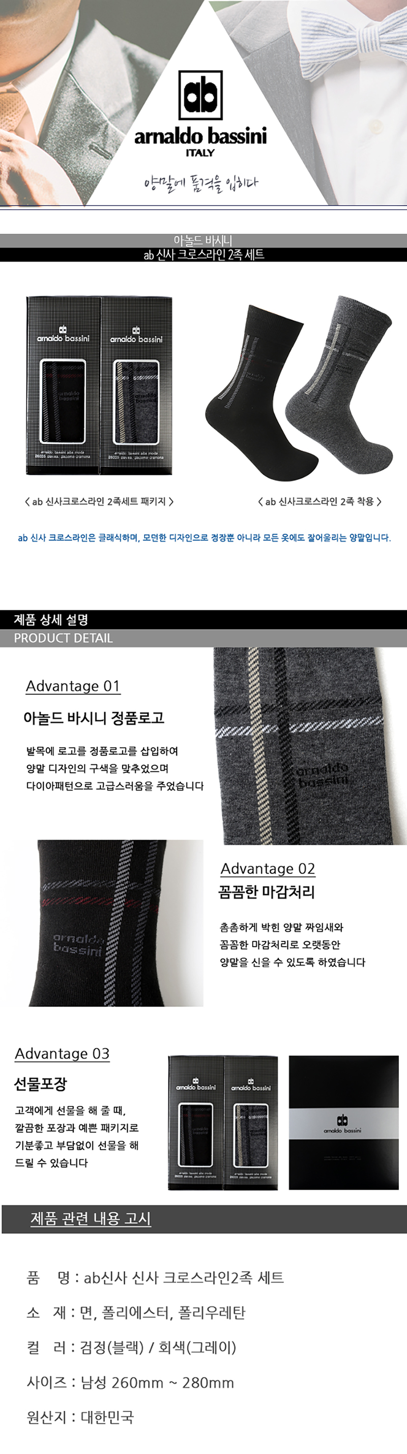 ab 아놀드바시니 신사 크로스라인 2족세트