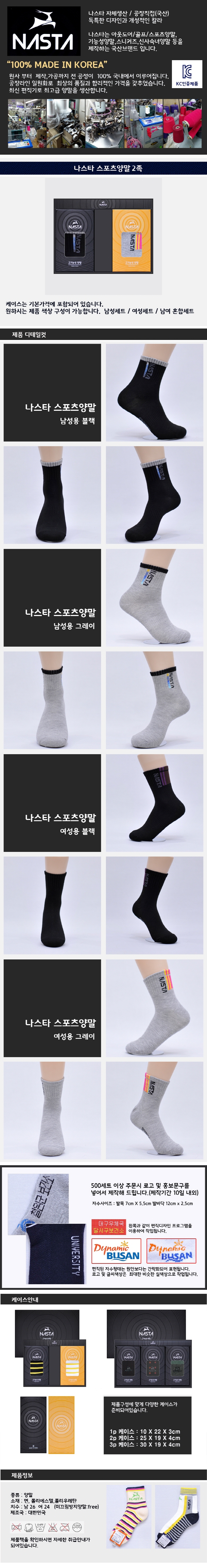 나스타 스포츠양말 2족 세트 (남/여 혼합가능)