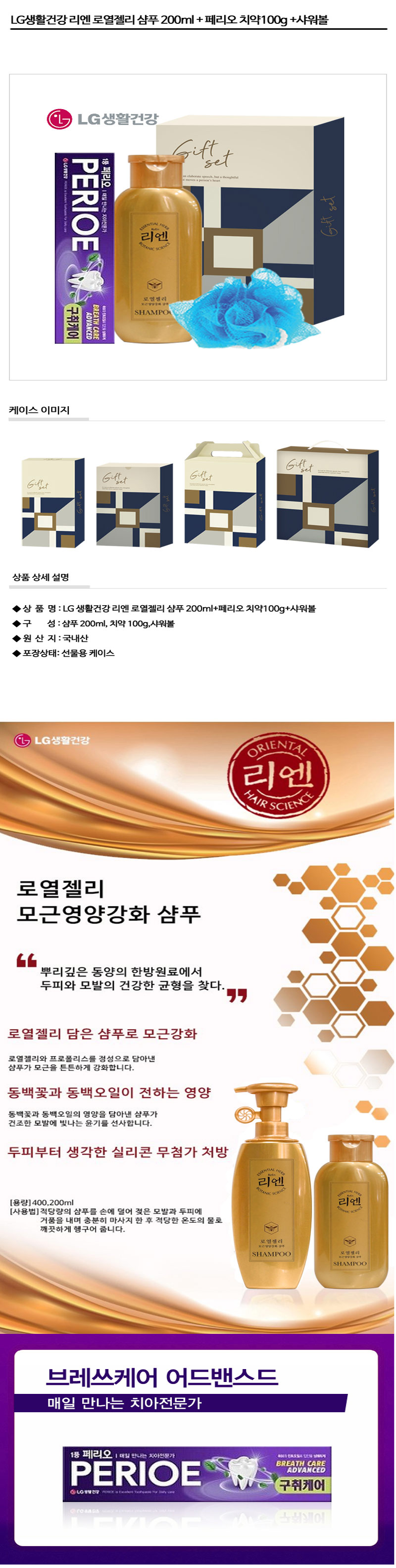 리엔 로열젤리 샴푸+페리오 치약+샤워볼/101-217299