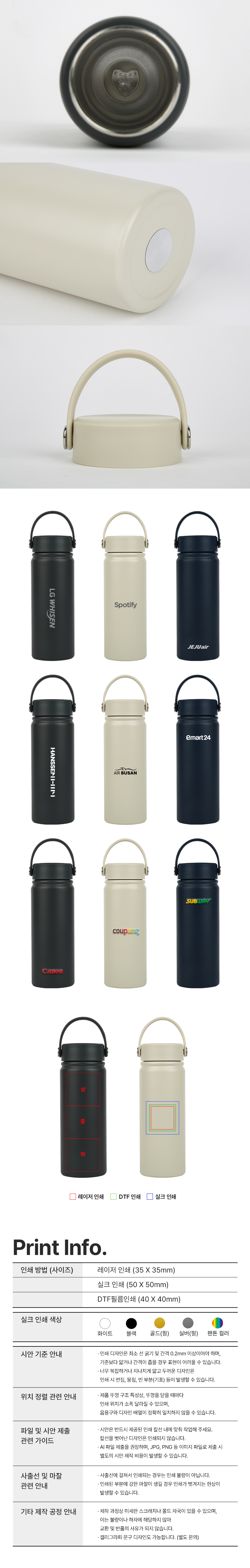 - 실크인쇄 50mm*50mm / 레이저인쇄 35mm*35mm / 필름인쇄 : 40mm*40mm