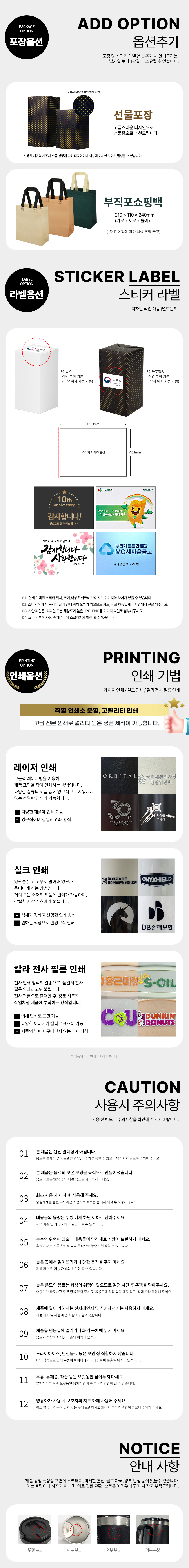 - 실크인쇄 50mm*50mm / 레이저인쇄 35mm*35mm / 필름인쇄 : 40mm*40mm