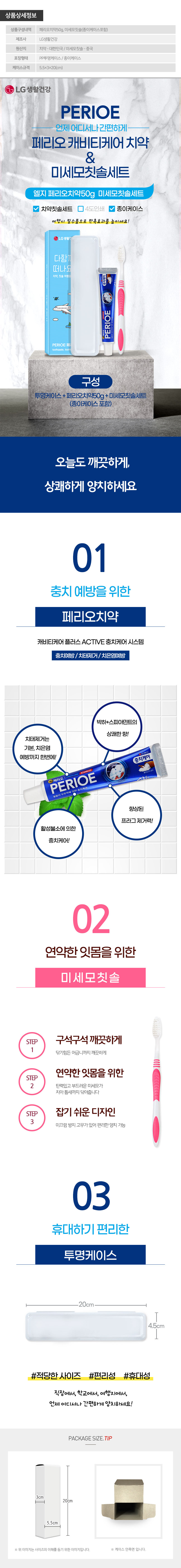 * 인쇄를 원하시경우 페리오치약50g 미세모칫솔세트(PP/투명/4도인쇄/케이스) 제품을 확인해주세요