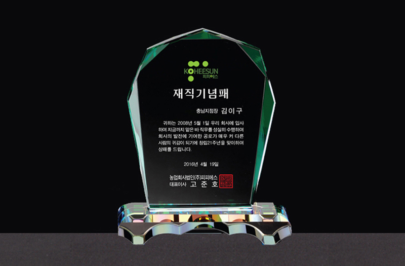 *크리스탈의 표면을 조각하여 제작하기 때문에 제작 진행 중 또는 제작 완료 후에는 문구 및 디자인 변경이 불가합니다.