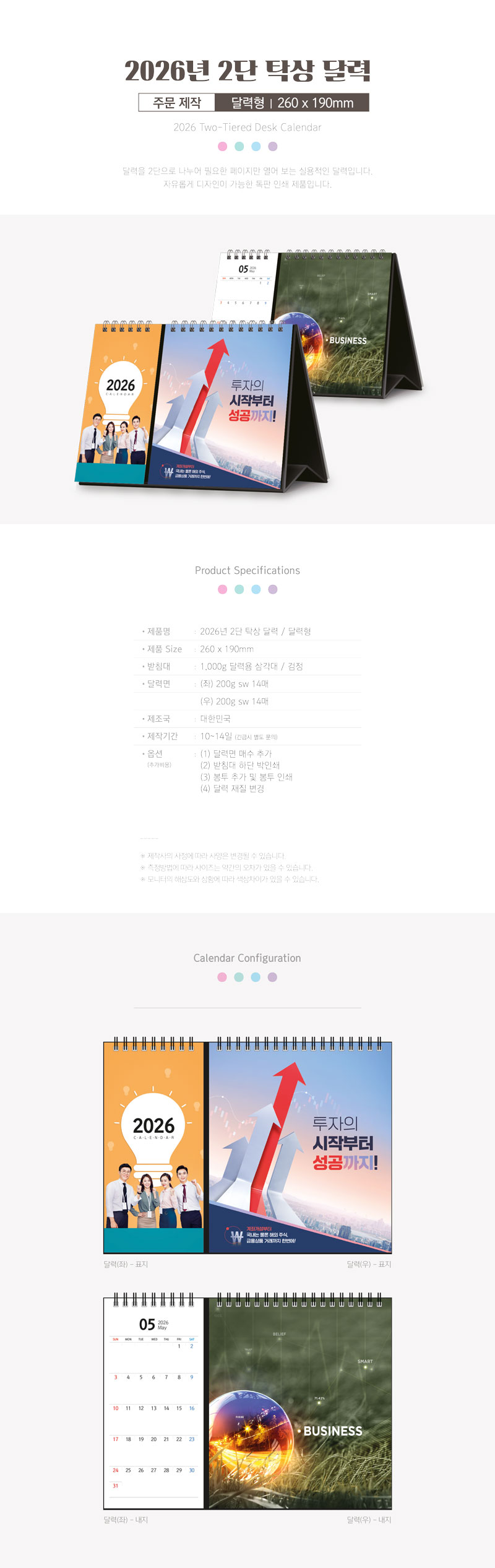 탁상 2단 달력 260*190 (달력형/독판 주문제작)