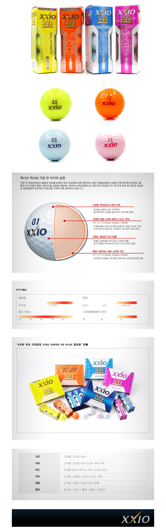 - 볼의 부드러움은 물론 최상의 볼 성능을 자랑하는 젝시오 슈퍼XD는 총5가지 색상