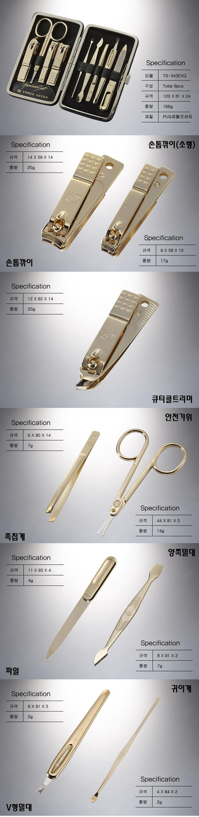 ● 구성 : 손톱깎기(3),쪽집게,V홈밀대,귀이게,양면밀대,미용가위,양날밀대