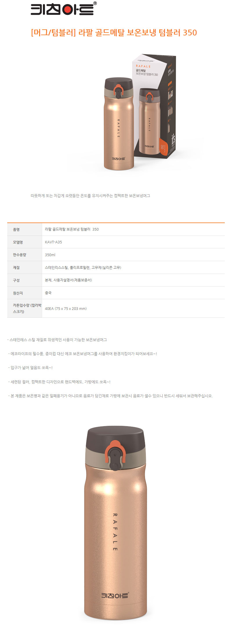 라팔 골드메탈 보온보냉 텀블러 350ml