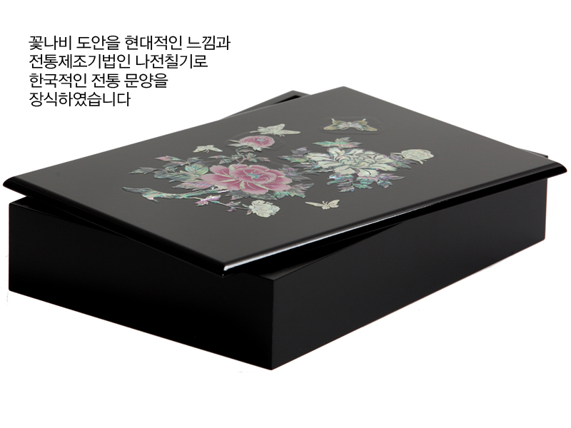[국내생산] 목단 꽃나비 자개서류함