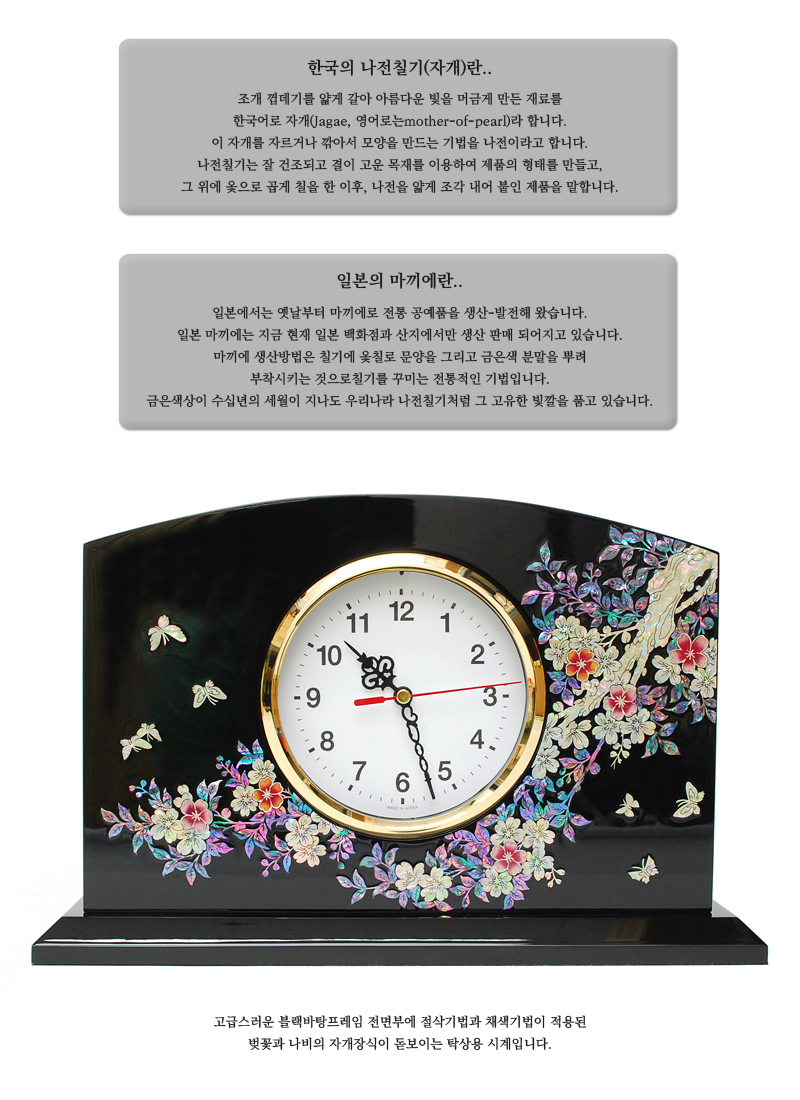 나전 자개 벚꽃사각탁상시계