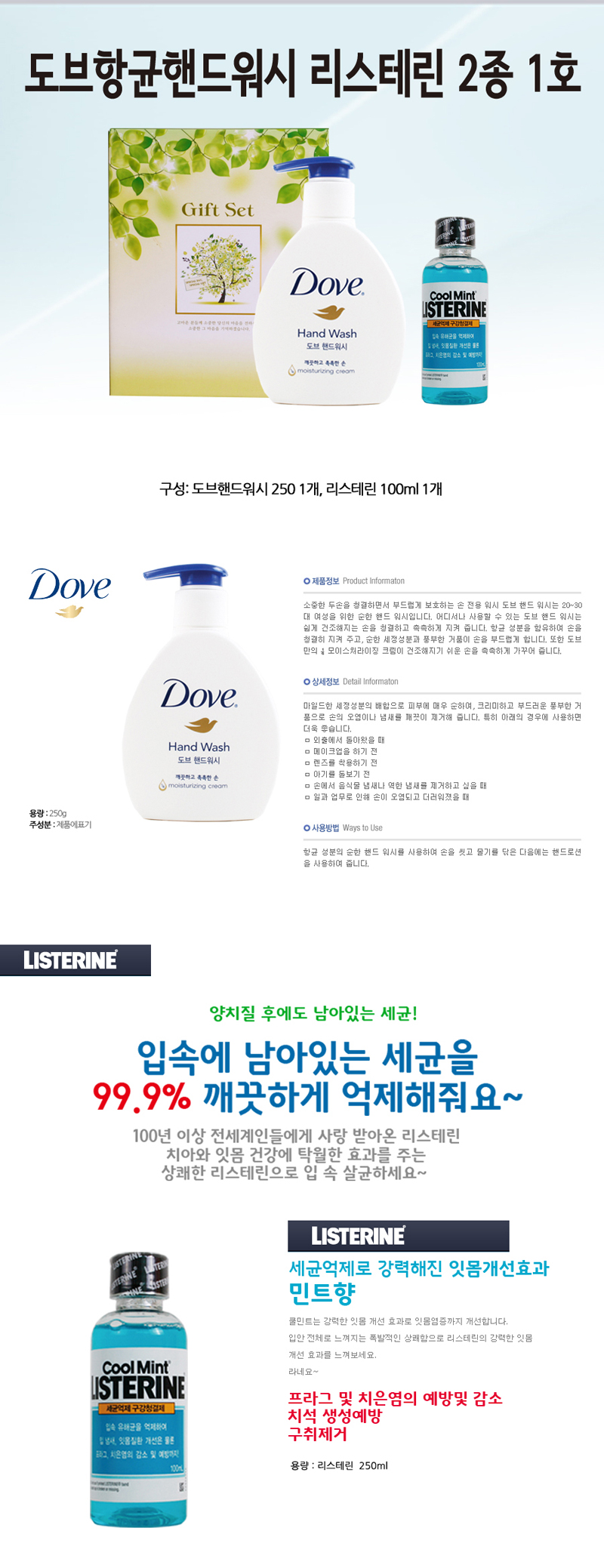 도브 향균 핸드워시+리스테린 100ml 2종세트