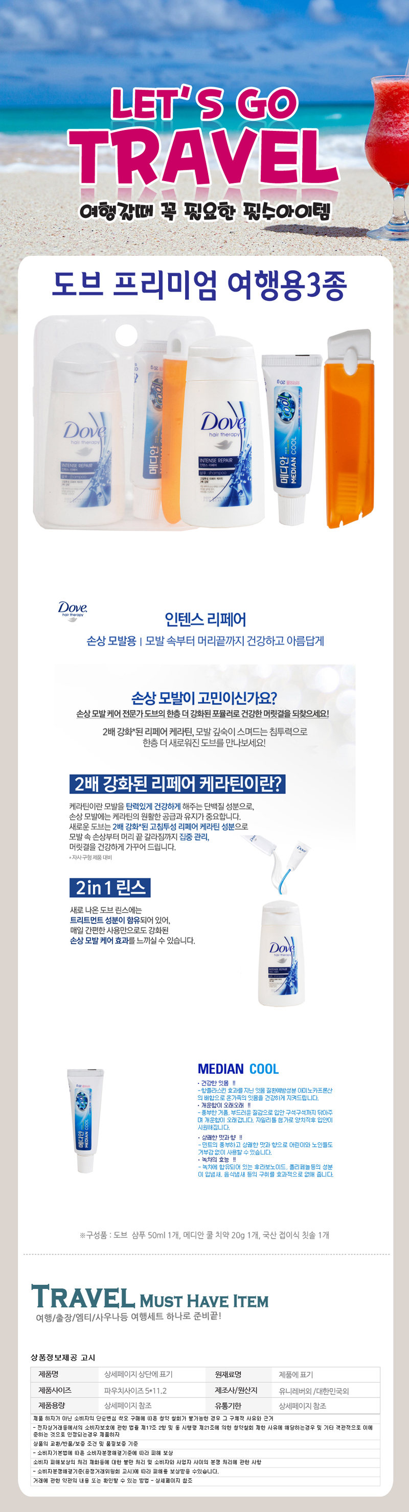 도브 프리미엄여행용 3종세트