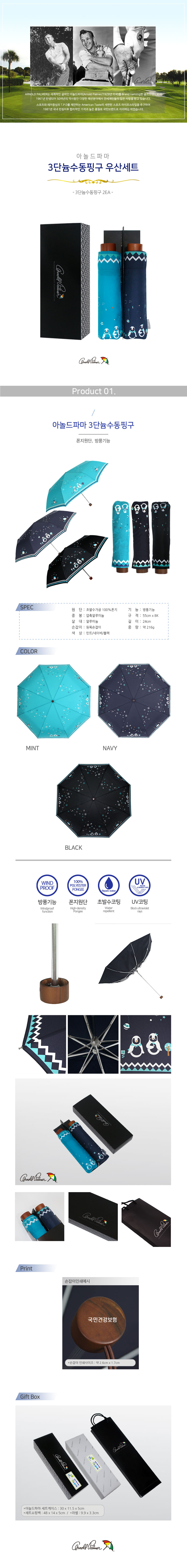 아놀드파마 3단늄수동핑구 우산세트