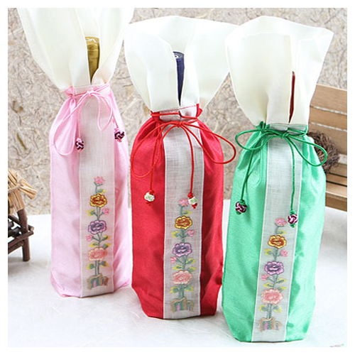 전통주 커버 자수주머니