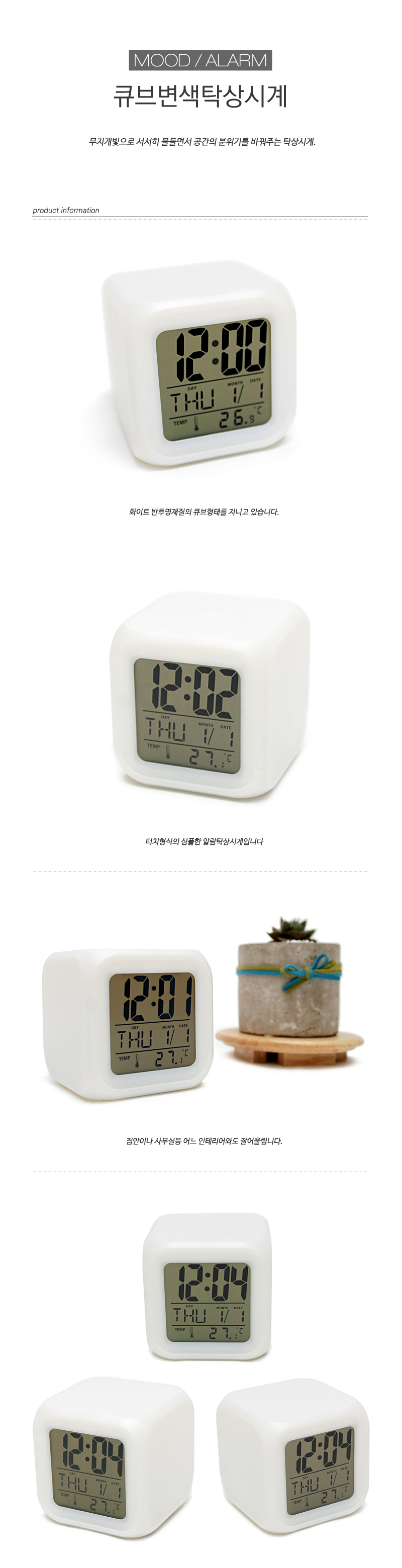 * 7가지 칼라의 불빛이 바뀌면서 보여지는 변색무드시계입니다.