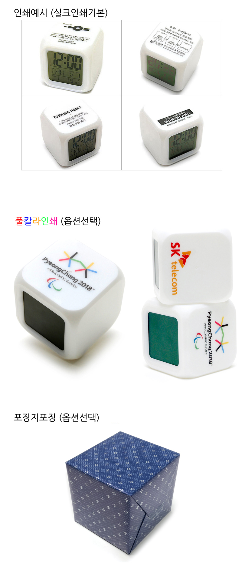 * 기본수량 이상 주문시 시계상단에 실크 1도인쇄 서비스 해드립니다. (기본 수량 미만시 인쇄기본비용이 추가됩니다.)