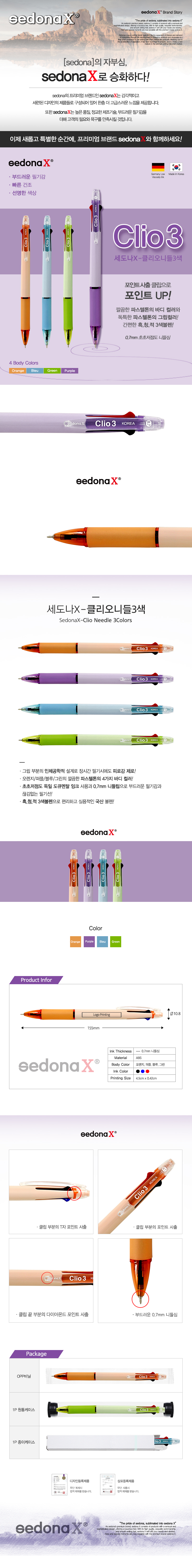 (국산)세도나X클리오니들3색(0.7mm)(독일잉크/초초저점도)
