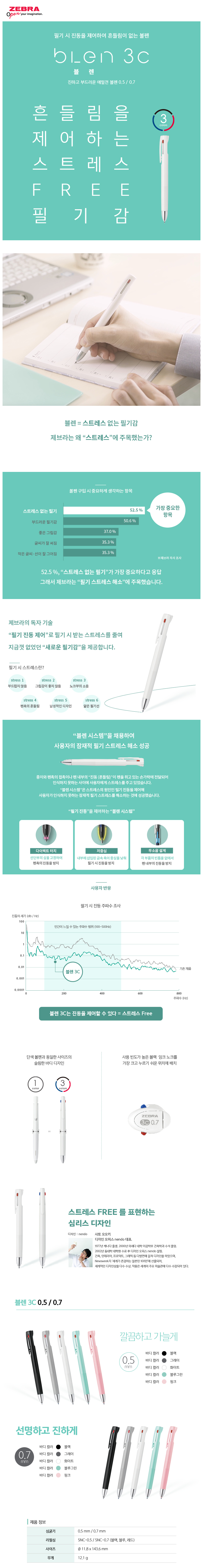 제브라 블렌 3C볼펜 0.7 0.5