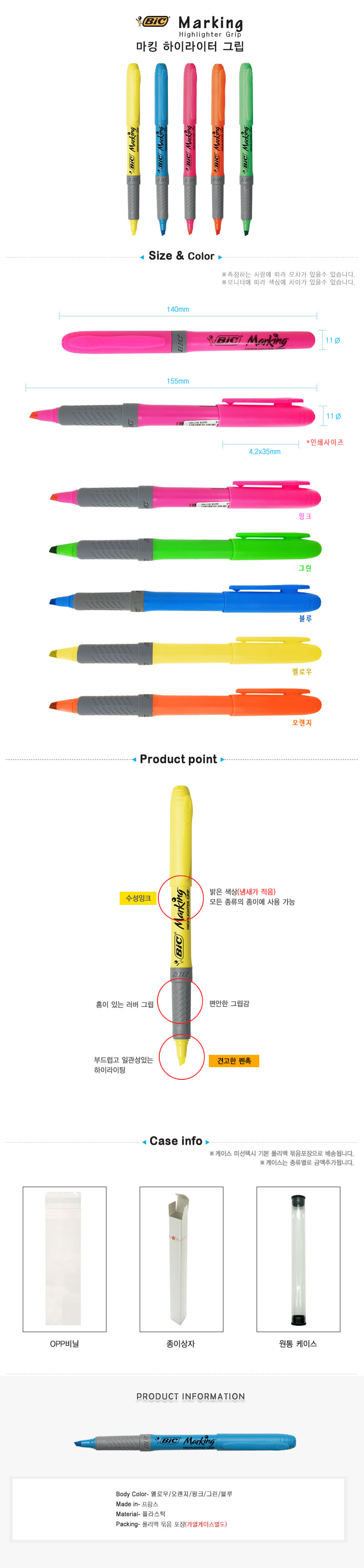 핑크,청색,노랑,주황,녹색의 다양한 색상을 구비하였으며