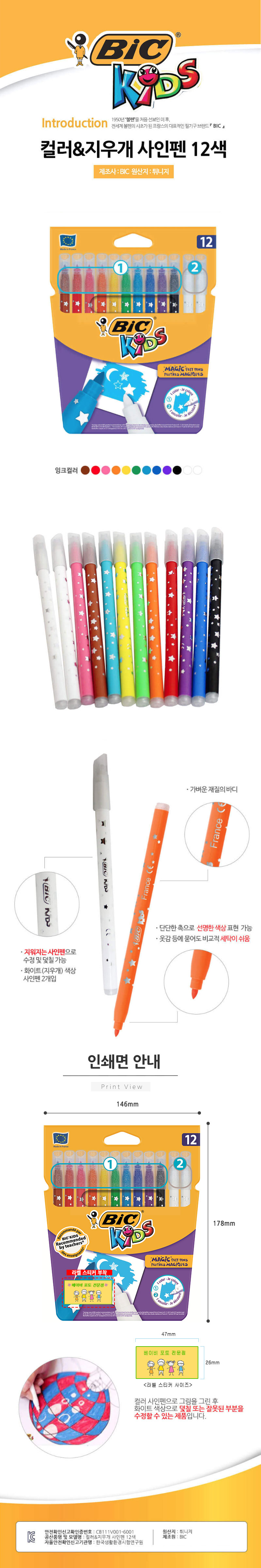 BIC 컬러앤지우개 사인펜 12색