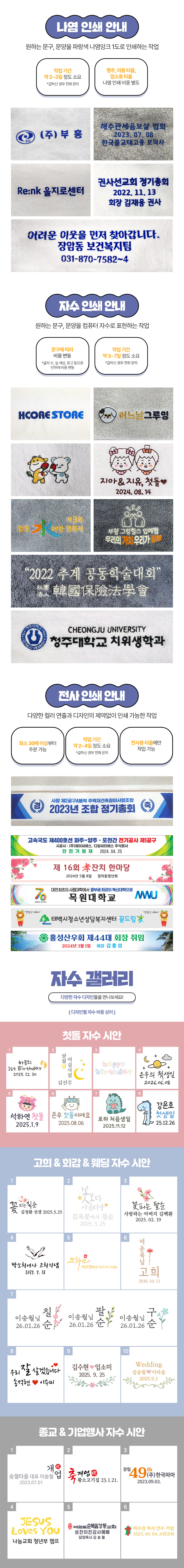 * 기본수량미만 자수인쇄시 시스템에 표기된 금액 이외에 기본 자수비용이 추가됩니다.